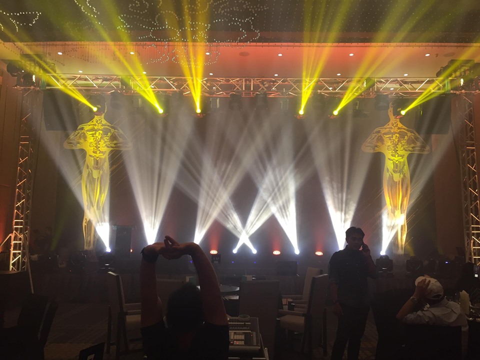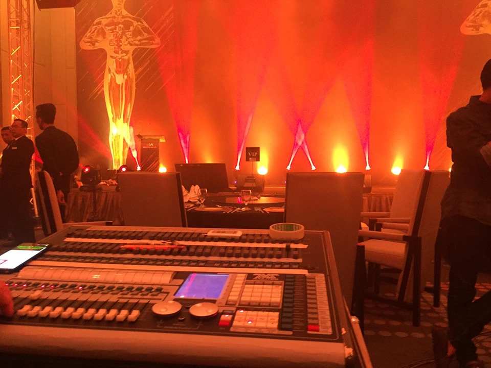 Our event decoration Penang team set up the stage backdrop, lighting and sound system for them.