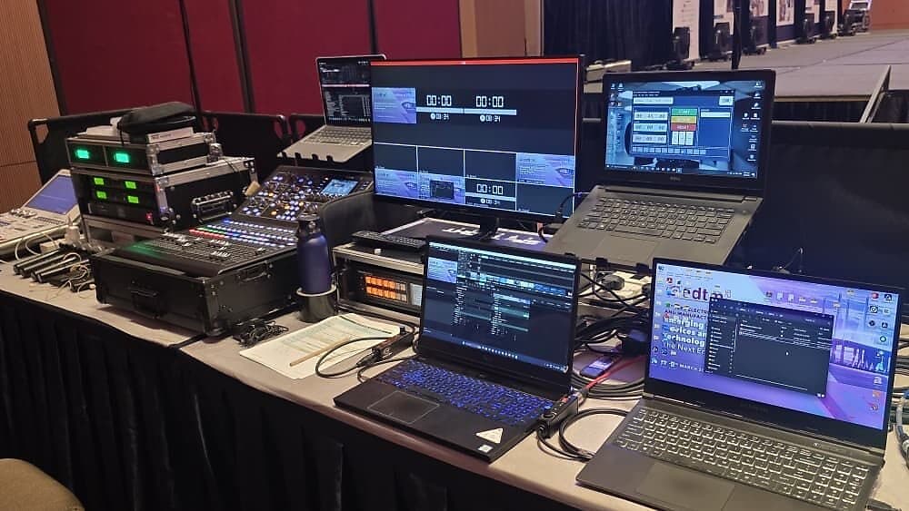 Full hybrid event setup including multi-camera live streaming, online audience management and replay-ready recordings.